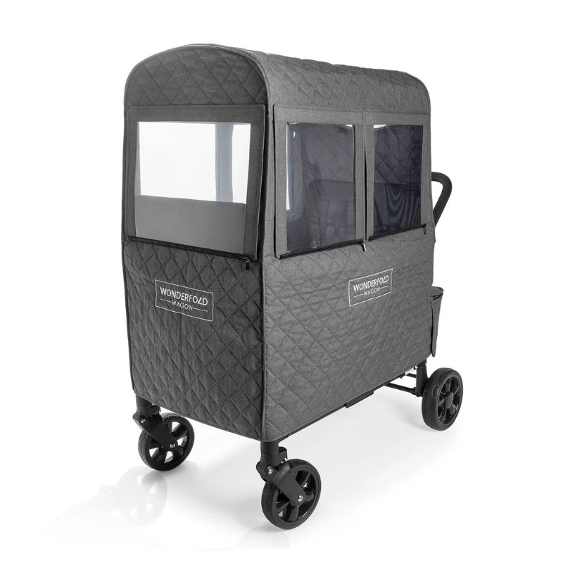 The Winter Warm Cover ( available for the W2 and X2 models), transforms your wagon into a cozy cocoon during chilly months. With its cotton fiber filling and high-quality breathable polyester fabric, it keeps little ones snug while maintaining visibility through clever window designs.