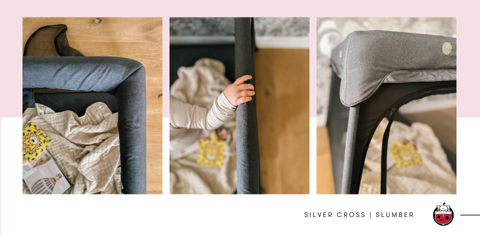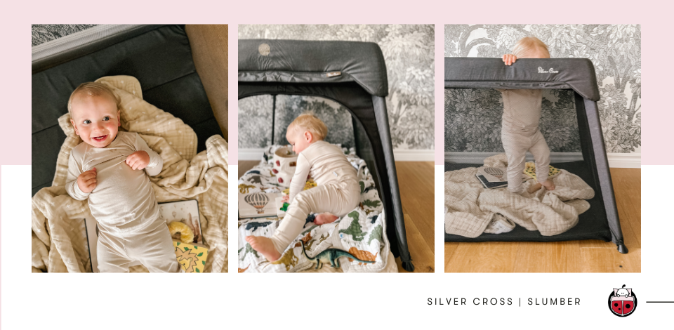 De l'autre côté de l'étang vient le Lit de voyage Slumber par Silver Cross ! Si vous n'en avez pas entendu parler, Silver Cross est une marque anglaise populaire réputée pour ses designs élégants et son savoir-faire de qualité. En fait, ils ont bâti leur réputation en fournissant à la famille royale des poussettes datant de 1895 ! (Maintenant, c'est une approbation.)