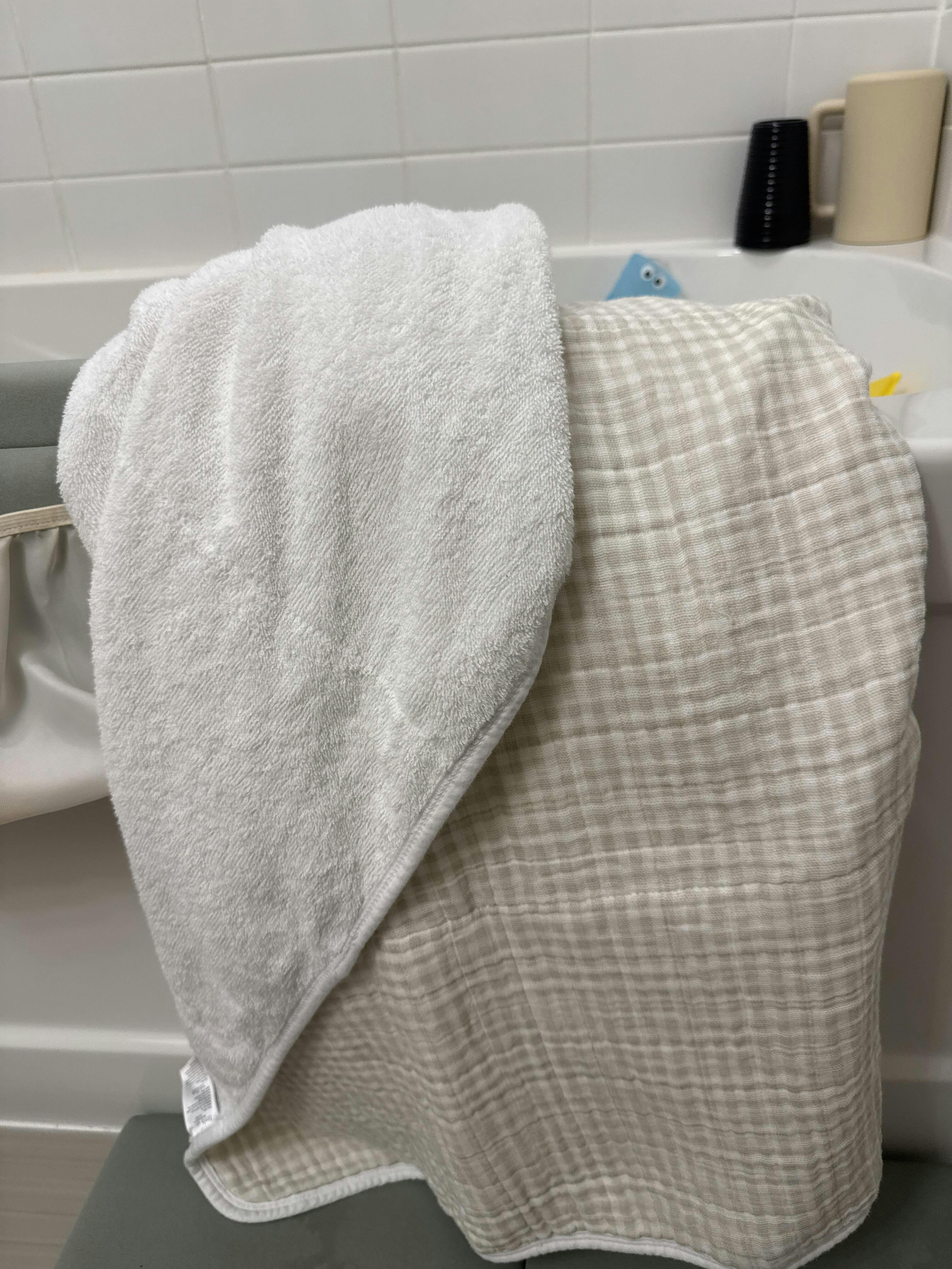 Essential Toddler Towel. Great for wrapping your baby up after bath time, with the hood and bigger length. It’s not as plush but does the job