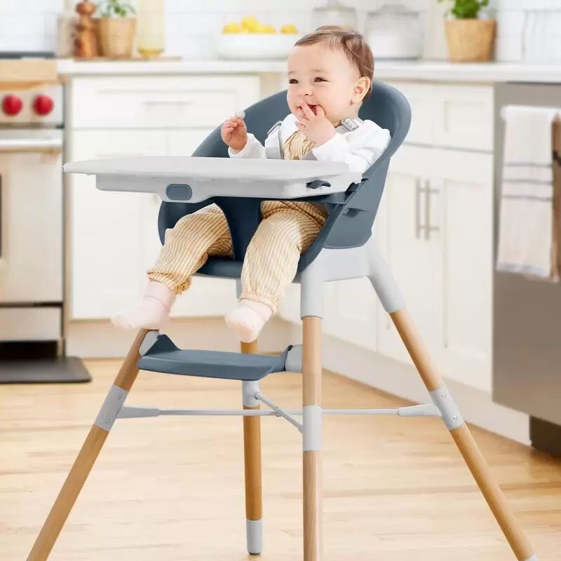 The Skip Hop EON 4-in-1 High Chair is the ultimate mealtime essential that grows with your child. With a sleek, space-saving design, this high chair transforms from a high chair to a dining booster, tableside booster, and finally, a big kid chair.